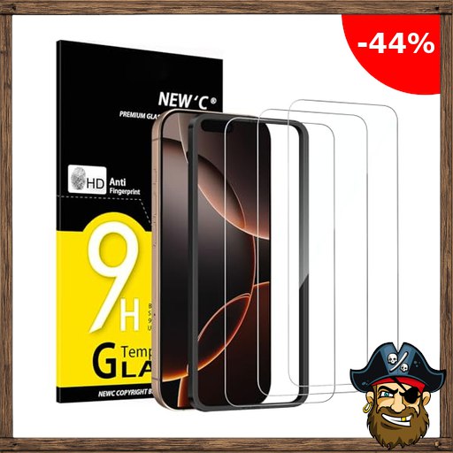 NEW’C 3 Stück für iPhone 17, 17 Pro, iPhone 16 Pro für Panzerglas (6,3 Zoll), Frei von Kratzern, 9H Härte, HD Displayschutzfolie, Ultra-klar, Ultrabeständig -Einfaches Installationswerkzeug enthalten Pirate-D;eals