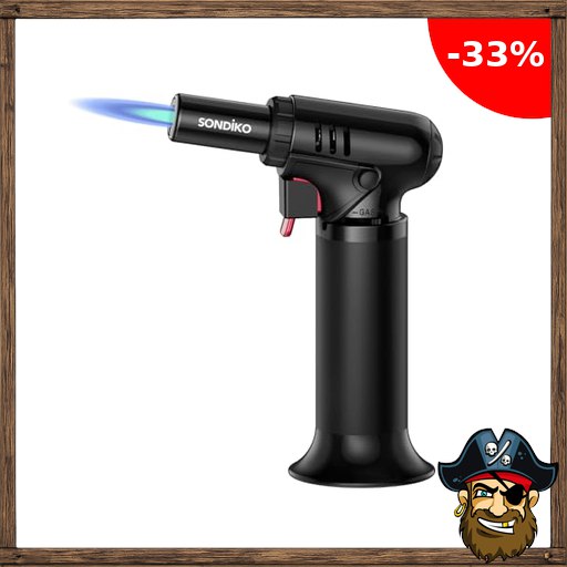 Sondiko P~irate-Deals Flambierbrenner mit Tankanzeige S907, Feuerzeuge, Bunsenbrenner, Nachfüllbarer Lötbrenner mit Sicherheitsschloss für die Küche, Camping (Butan nicht Inbegriffen)