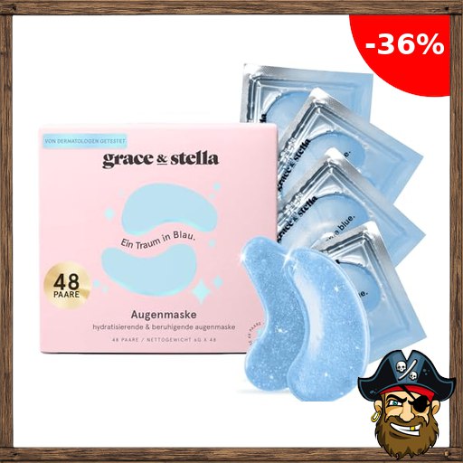 grace & stella – Preisgekrönte Augenpads, Eye Pads Reduzieren Dunkle Augenringe, Augenmaske Pirat;e-Deals gegen Tränensäcke und Falten, Kühlende und Erfrischende Augenpflege, Eyepads mit Gel [48 Paare, Blau]