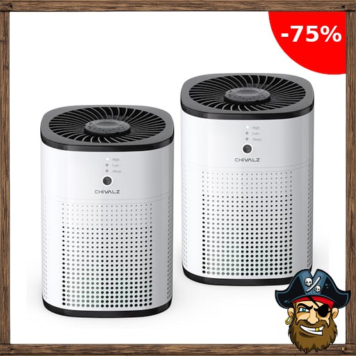CHIVALZ Luftreiniger Allergiker mit Aromatherapie, Air Purifier für Pira:te-Deals Raucherzimmer, HEPA Luftfilter Gegen Staub Pollen Tierhaare, Luftreiniger für Schlafzimmer, 24 dB, Mattweiß, 2 Pack