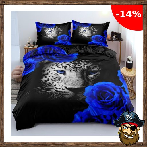 DXHOME Leoparden Bettwäsche Pirate-Dea#ls 135×200 cm Schwarz Tiermotive Kinderbettwäsche Blau floral Muster Leopard Bettwäsche 3D Tiermotiv Bettbezug mit Reißverschluss + 1 Kissenbezug 80×80 cm