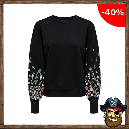 ONLY Female Sweatshirt Normal geschnitten Pirate-Dea!ls Rundhals Gerippte Ärmelb…