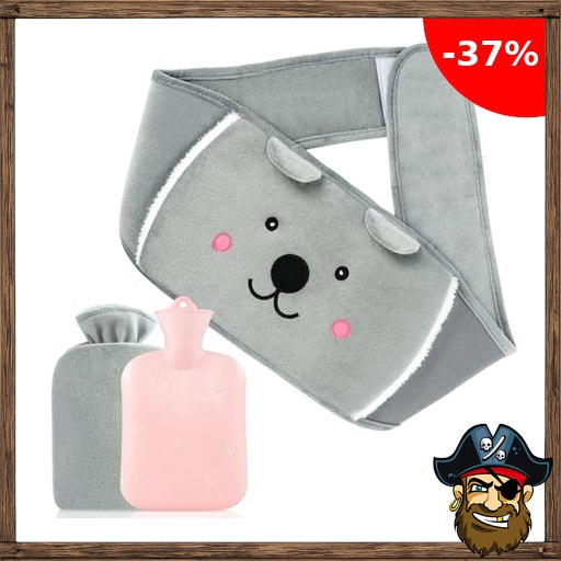 Wärmflasche Wärmflaschengürtel Gummi Wärmflasche mit bezug,1L weichem Plüsch Frauen Wärmegürtel für Periode Nacken Schulter Rücken Pirate-~Deals Beine Regelschmerzen