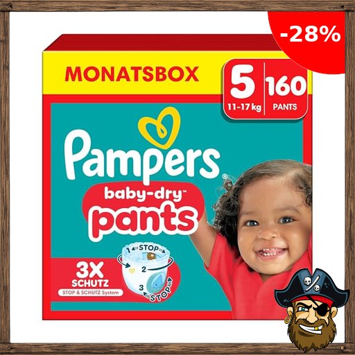 Pampers Baby-Dry Pants Größe 5, 160 Windeln, 11kg-17kg, Pirate-Deal;s 360° Passform hilft, Auslaufen zu verhindern