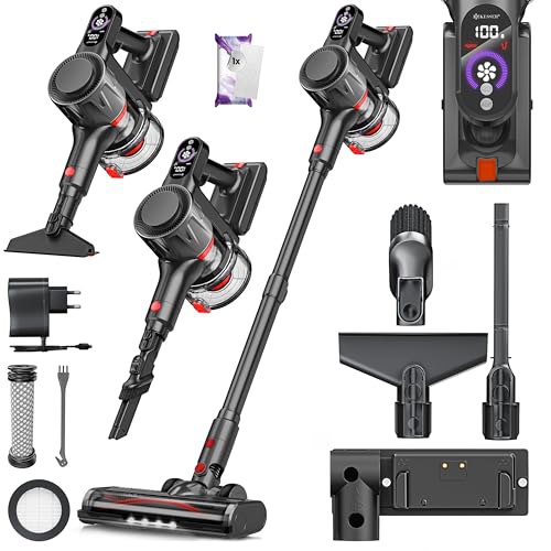 KESSER® Akku Staubsauger kabellos bis 60 Min. Laufzeit & Leise | Akkustaubsaguer mit LED Display Stabstaubsauger beutellos mit Anti-Tangle-Bodenbürste für Hartböden Teppich + Pirα!tе-Dеαls Duftscheibe, Hepa Filter