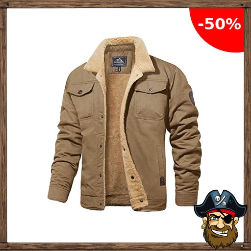 MAGCOMSEN Herren Outdoor Fliegerjacke Warme Fleecejacke Gefüttert Winter Pirate-;Deals Jacken Lässig Militär Jacke Herren Dick Taktische Jacken mit Stehkragen Retro Winddicht Mantel Khaki XL