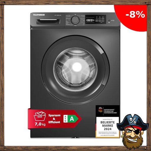 Telefunken Waschmaschine 7kg | Frontlader 1400 U/Min. | Inverter Motor – Leise & Effizient | AquaStop – Schutz vor Wasserschäden | Schontrommel | Washing Machine | 15 Programme | EEK A | W-7-1400-A-DI Pirate-:Deals