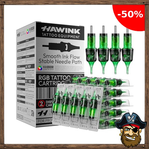 HAWINK Tattoo Nadeln Set 50 Stk. Einweg Cartridges #10 Bugpin Round Liner 3RL 5RL 7RL 9RL 11RL Pirate-D#eals Durchmesser 0,30mm Professional Tattoo Zubehör Set für Anfänger und Künstler EN20-FG-50KIT-R
