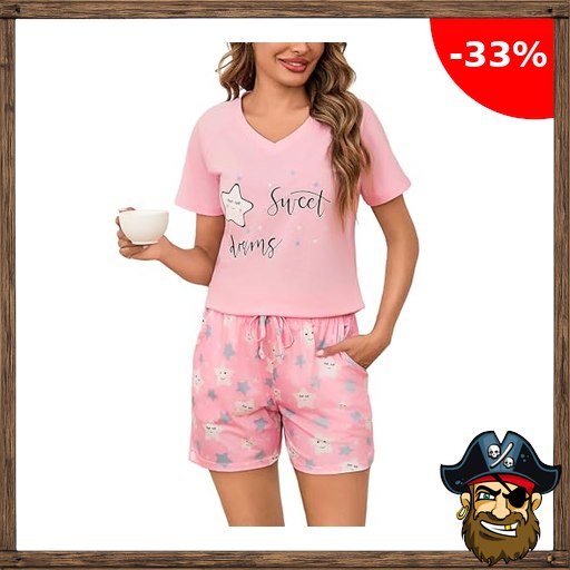 Litherday Schlafanzug Damen Kurz Pyjama Set Kurzarm Nachtwäsche Pira~te-Deals Se…
