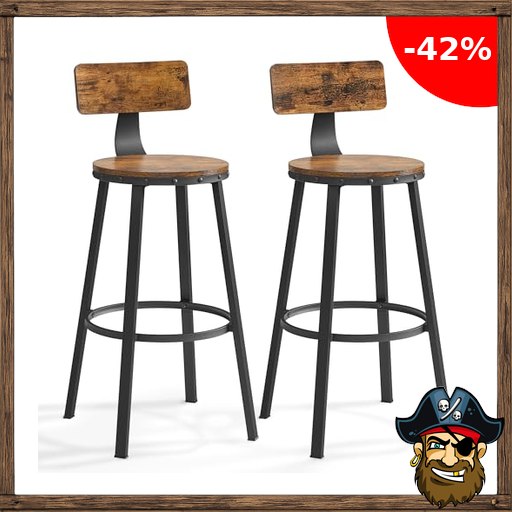 VASAGLE Barhocker, 2er Set, Barstuhl, Küchenstuhl mit Metallgestell, Sitzhöhe 73 cm, einfache Montage, Industrie-Design, Pirate-D#eals vintagebraun-schwarz LBC026B01V1