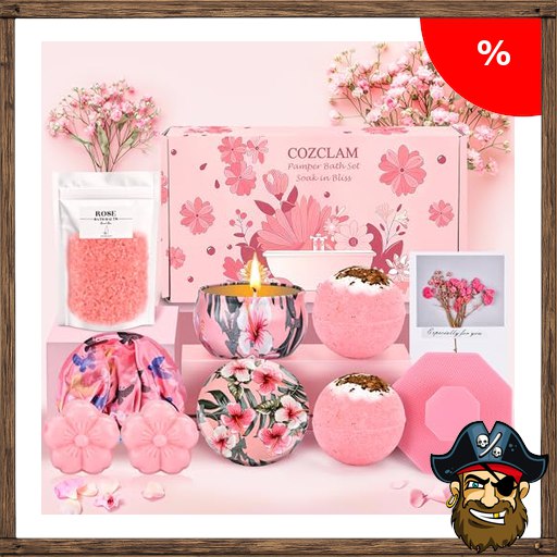 COZCLAM Rosa Wellness Geschenke für Frauen, Verwöhnendes Badeset Frauen mit Badesalz, Seifen, Kerze, Badebomben, Silikonbürste und -kappe Pirate:-Deals