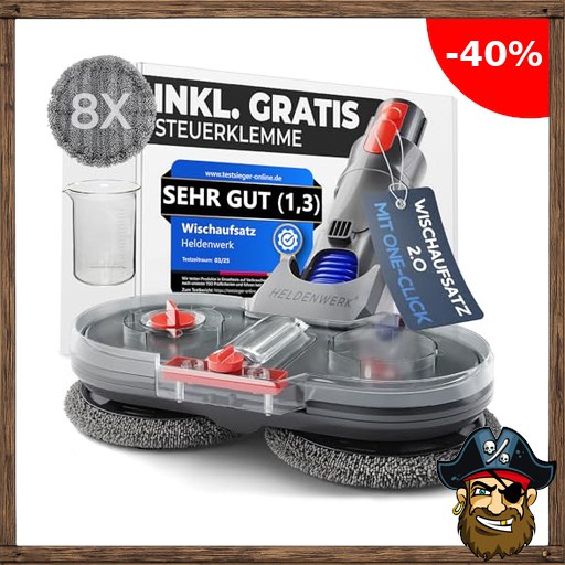 HELDENWERK Wischaufsatz für Dyson V7/V8/V10/V11/V15/Gen5 Staubsauger, Dyson Zubehör Wischaufsatz, Elektrischer P$irate-Deals Bodenwischer mit Wassertank, Füllbehälter & 8 waschbaren Mops