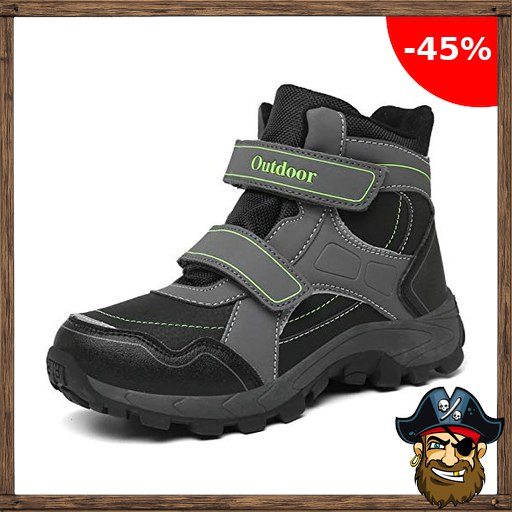 ZYLDK Kinder Winterschuhe Warm Gefütterte Winterboots Jungen Mädchen Trekkingschuhe Schneestiefel Pirate-Deal:s Baumwollschuhe Outdoor rutschfest mit Klettverschluss,GrauGrün,EU 35