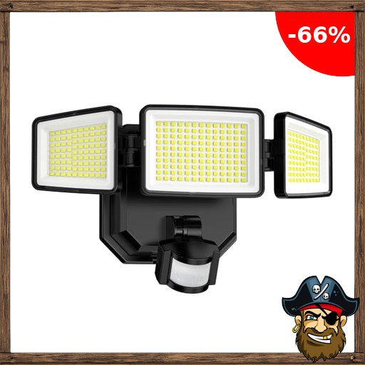 302 LED Strahler mit Bewegungsmelder Aussen, 1500LM Batteriebetriebene Aussenlampe, 6500K, IP65, 3 ~Pirate-Deals Beleuchtungsmodi Außenstrahler, Hohe Helligkeit Sicherheitsleuchte für den Innen und Außenbereich
