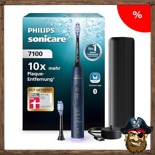 Philips Sonicare 7100 elektrische Zahnbürste, Schallzahnbürste mit App, 4 Putzmodi, 3 Intensitätsstufen, Pir!ate-Deals Andruckkontrolle, EasyStart, SmarTimer, Marineblau, Modell HX7423/01 [Neue Technologie]