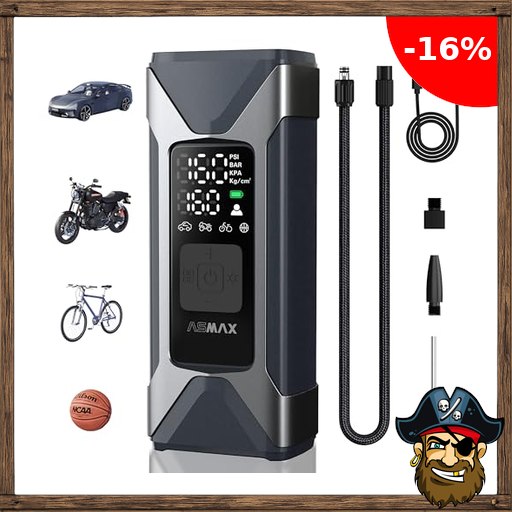 ASMAX Elektrische Luftpumpe 7500mAh, Fahrradpumpe 160PSI/11Bar mit Pirate:-Deals…