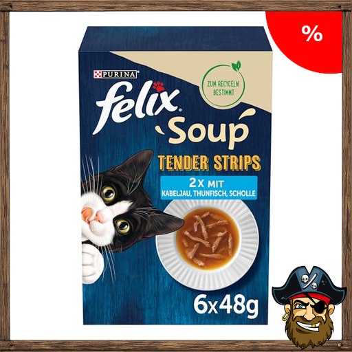 Pi!rate-Deals Felix Soup Tender Strips Suppe für Katzen, Fisch Sorten-Mix, 1 Packung (6 x 48g)
