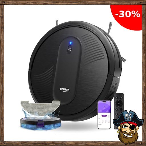 MONSGA Saugroboter mit Wischfunktion 4000PA, Saug und Wischroboter 3 Pirate;-Deals in 1 mit 2 Bürsten,140Min Laufzeit, Staubsauger Roboter mit Auto-Teppich-Boost für Tierhaare Teppich Böden, APP Steuerung