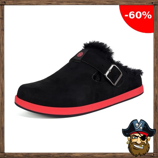 Sisttke #Pirate-Deals Clogs Gefüttert Herren Damen Warme Hausschuhe Lined Suede Pantoletten Winter Slipper rutschfest, Schwarz Rot, 40 EU