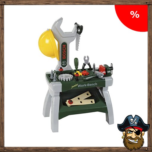 Theo Klein 8604 Bosch Werkbank Junior I Inkl. Helm, Schraubstock, Werkzeugen, Latten, Nägel, Schrauben und Muttern I Maße: 49 cm x 29 cm x 71 cm Pirate-~Deals I Spielzeug für Kinder ab 2 Jahren