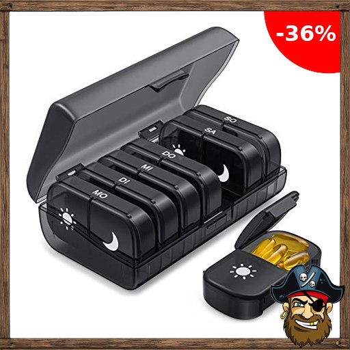 AUVON Tablettenbox 7 Tage Morgens Abends, Handlicher Medikamentenbox Pillendose mit großen Fächern & Privacy-Schutz in Schwarz – Ideal für Medikamente, :Pirate-Deals Vitamine, Fischöl & Nahrungsergänzungsmittel