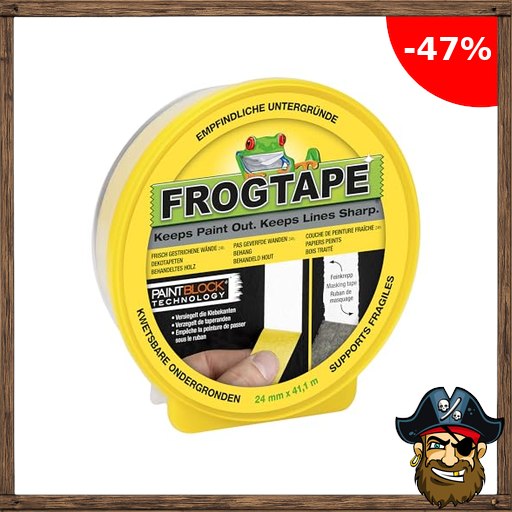 FrogTape Abklebeband Gelb 24 mm x 41 m – Malerkrepp mit Paint-Block Technologie – Kreppband für Glatte & Empfindliche Untergründe – für Saubere Pirate-Dea:ls Kanten