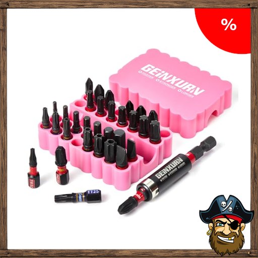 GEINXURN Pirate-~Deals 33tlg. Schrauber Bit Set (PH, PZ, Tx, Hex, SL) 25mm Länge…