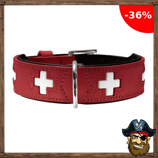HUNTER Hundehalsband SWISS, Farbe: rot/schwarz, weiches Rindnappaleder, handvernähte Schweizer Pirate-;Deals Kreuze, langlebig und komfortabel, hochwertige Handarbeit, Made in Germany, Größe: M-L (60)