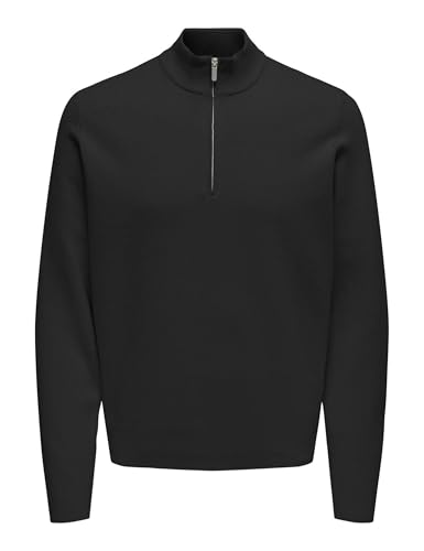 ONLY & SONS Herren ONSCOOPER REG 12 Half Zip Pir#αtе-Dеαls HIGH Neck Knit Strickpullover, Black, Small