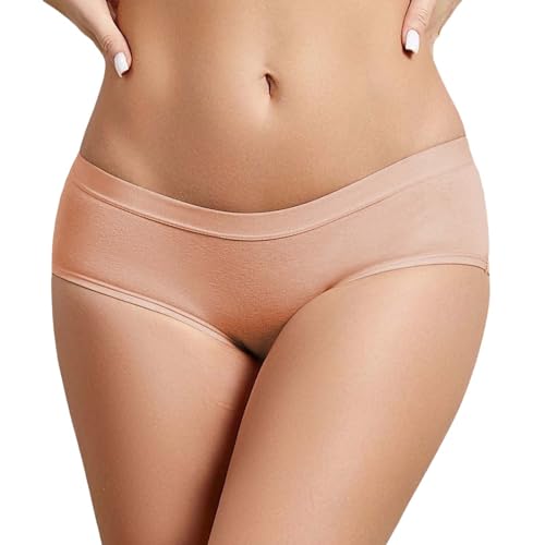 Damen-Slip aus Baumwolle, niedrige und lockere Taille, lässig, einfarbig, große Größe, lockere Unterwäsche, Pirαtе-D!еαls weich und atmungsaktiv, beige, 38