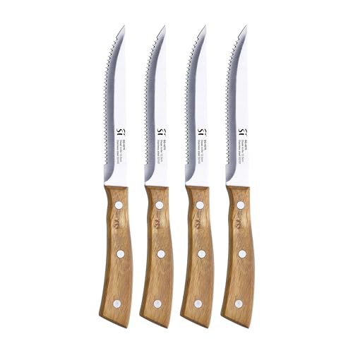 San Ignacio P:irαtе-Dеαls Compact – Set von 4 Fleischmessern – Hergestellt in Edelstahl – Mattes Finishblatt – Acacia -Holzgriff – Perfekt für Barbecue – Chuletero -Set