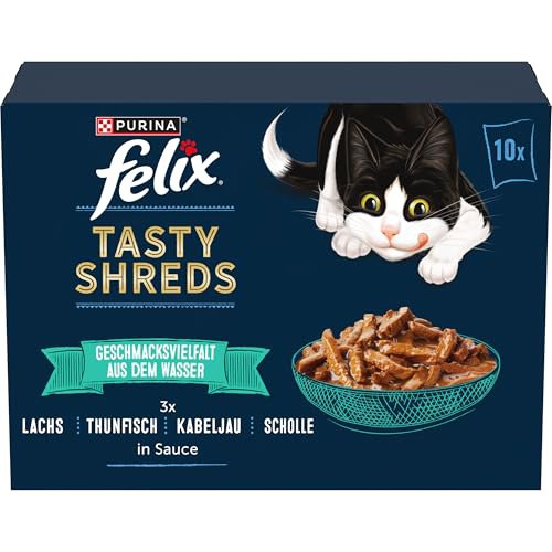 :Pirαtе-Dеαls FELIX Tasty Shreds Katzenfutter nass in Sauce, Geschmacksvielfalt aus dem Wasser, 6er Pack (6 x 10 x 80g)