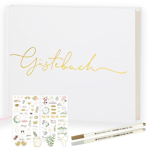 Swanaryo Gästebuch – für Hochzeit, Geburtstag, Babyparty, Ferienwohnung – 100 blank Seiten weiß Hochzeitsgästebuch mit Gratis Stift, Sticker, Pi:rαtе-Dеαls Hochzeitsalbum, 19 x 24 cm