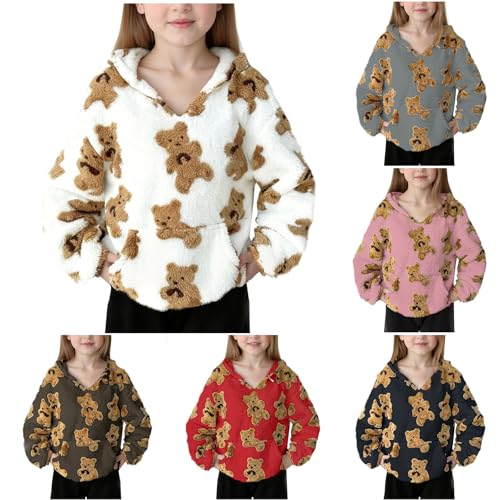 KODMNSW Kapuzenpullover Mädchen Teddy Fleece Hoodie mit Bärenabdruck Warm Sweats…