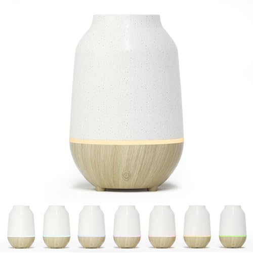 SALKING Aroma Diffuser, Keramik Ultraschall Aromatherapie Diffusor für ätherische Öle, mit automatischer Abschaltfunktion, Warmweiß Licht Weiß Holzmaserung Diffusor für Zuhause Pi;rαtе-Dеαls Büro Oder Yoga