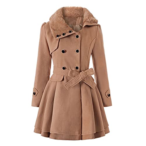 ZRYAZQ Wintermantel Damen Elegant A Linie Mantel Damen Winter Warm Lang Wollmantel mit Gürtel Trenchcoat Pirαtе-Dеα;ls Lange Winterjacke Revers Zweireihig Übergangsmantel mit Taschen Damenmantel Winter Mäntel
