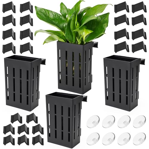 Borlech Pir:αtе-Dеαls Aquarium Pflanzenhalter für Aquarium Aquaponic Pflanzenkultur Hängender Halterung und Aquascape Dekorationen Pflanztopf Zubehör (Schwarz)