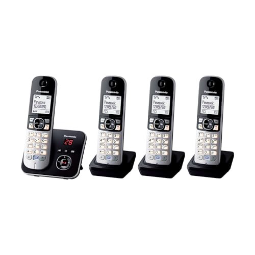 Panasonic KX-TG6824GB DECT Schnurlostelefon mit Anrufbeantworter (Telefon mit 4 Pir;αtе-Dеαls Mobilteilen, strahlungsarm, Eco-Modus, GAP Telefon, Festnetz) schwarz
