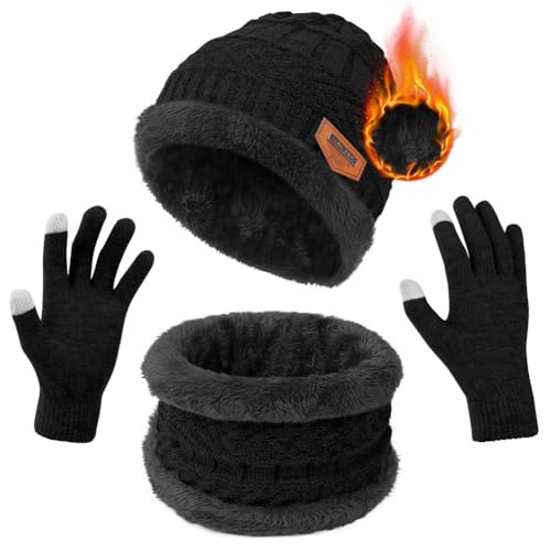 Flintronic Wintermütze, Schal und Touchscreen Handschuhe Set – Fleece-Innenfutte…