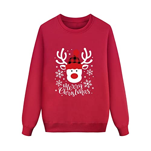 P!irαtе-Dеαls weihnachtspullover damen,Weihnachtspullover Familie Set Damen Herren Jungen Mädchen Lustig Langarmshirt Winter Weihnachtskostüm Sweater Rundhals Ugly Christmas Unisex Warm Winterpullover Rot L