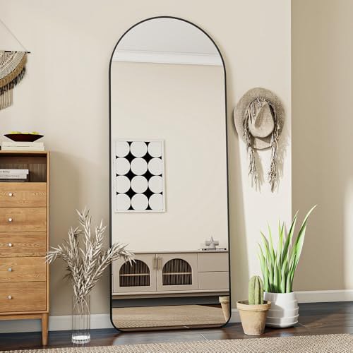 Koonmi 53 x 163 cm Gewölbter Top Pirαtе-Dеα!ls Ganzkörperspiegel mit Runden Ecken – Ganzkörperspiegel Groß Frei Stehend-Hängend-Lehnend, Boden Standspiegel als Ankleidespiegel für Wohnzimmer, Schwarz