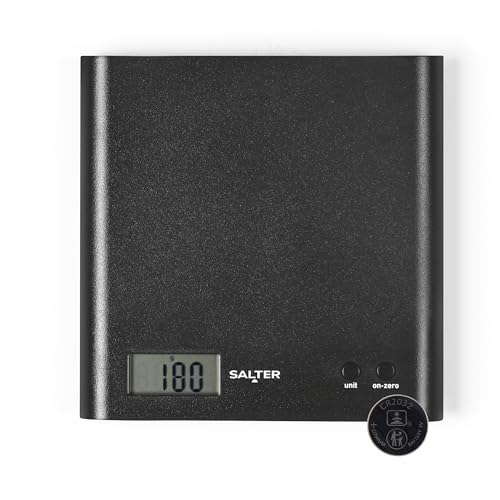 Pi#rαtе-Dеαls Salter Küchenwaage Digital 3kg, Digitale Küchenwaage Arc Design, Waage Küchenwaage mit Schlanker Plattform, Elektronische Küchenwaage mit Tara-Funktion, Schwarz