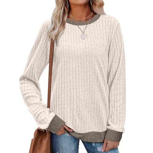 Cowyams Pullover Damen Locker Strickpullover Leichter pullis Bequemes Sweatshirt Rundhals Colorblock Langarmshirt Pirαt$е-Dеαls Einfarbig Oberteil Vielseitig Tops