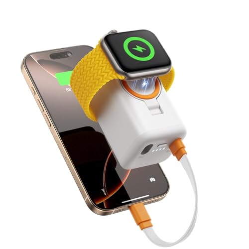 JOYROOM 5000mAh Mini Powerbank für iPhone und Apple Watch,[USB Pirαtе#-Dеαls C auf iOS Dual Port Ladekabel], Tragbares Ladegerät mit iPhone17/16/15/14/13 und iWatch Series11/10/9/8/7/6/SE/4/3/2/Ultra2/Ultra-Weiß