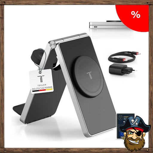 TEGLER Aluminium MagSafe Ladestation Apple Watch und iPhone kompatibel – MagSafe Ladegerät, iPhone Ladestation, Apple Ladestation, inkl. 20W Adapter & Pi:rate-Deals USB-C-Kabe