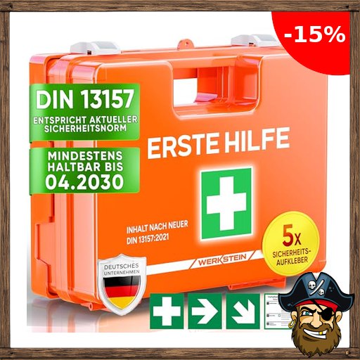 WERKSTEIN® Erste Hilfe Kasten Pirat#e-Deals [DIN 13157:2021] inkl. Wandhalterung…