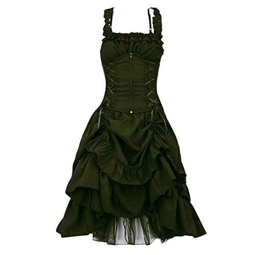 Piratenkostüm Damen Vintage Kleid Gothic,Halloween Kostüm Gothic Pirαtе-D:еαls Kleid Damen Elegante Ärmellos Partykleid Vintage Retro Renaissance Mittelalter Kleider Korsett Abendkleid Hexenkostüm Grün L