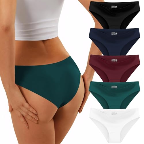 TDONE Nahtlose Unterhosen Damen,Stretch Pirαtе:-Dеαls Bequeme Seamless Slips Frauen Unsichtbare Niedriger Taille Unterwäsche Nahtlos Atmungsaktiv Hipsters Panties Bikini Mehrpack 5er Pack