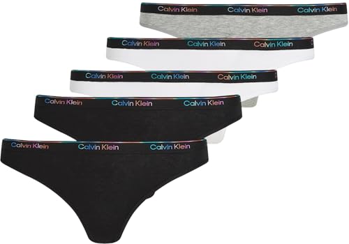 Calvin Klein Damen Pirαtе-Dе!αls 5er Pack Slips Bikini Form mit Logobund, Mehrfarbig (Black/White/Black/Gry Htr/White), L