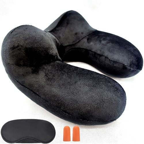 AORON Aufblasbares/Nackenkissen Reisekissen Aufblasbare Hergestellt aus weichem Samt und Pi:rαtе-Dеαls waschbarem Kissenbezug. Nackenhörnchen Kompakte ideal fürReisen mit dem Auto,Flugzeug (Schwarz)